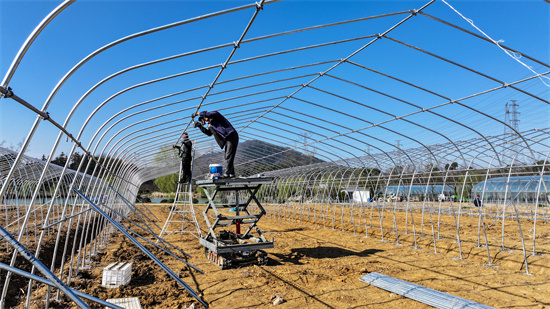 2025年3月21日,春和景明,安徽省合肥市廬江縣石頭鎮(zhèn)芮崗村金喬生態(tài)園一片繁忙的建設(shè)場景,10多名村民在基地技術(shù)人員的指導(dǎo)下,正在緊張搭建大棚,豎立鋼管支架、搬運(yùn)物資、平整土地,打造生產(chǎn)無害化、區(qū)域生態(tài)化、環(huán)境優(yōu)美化的果蔬種植生態(tài)園。