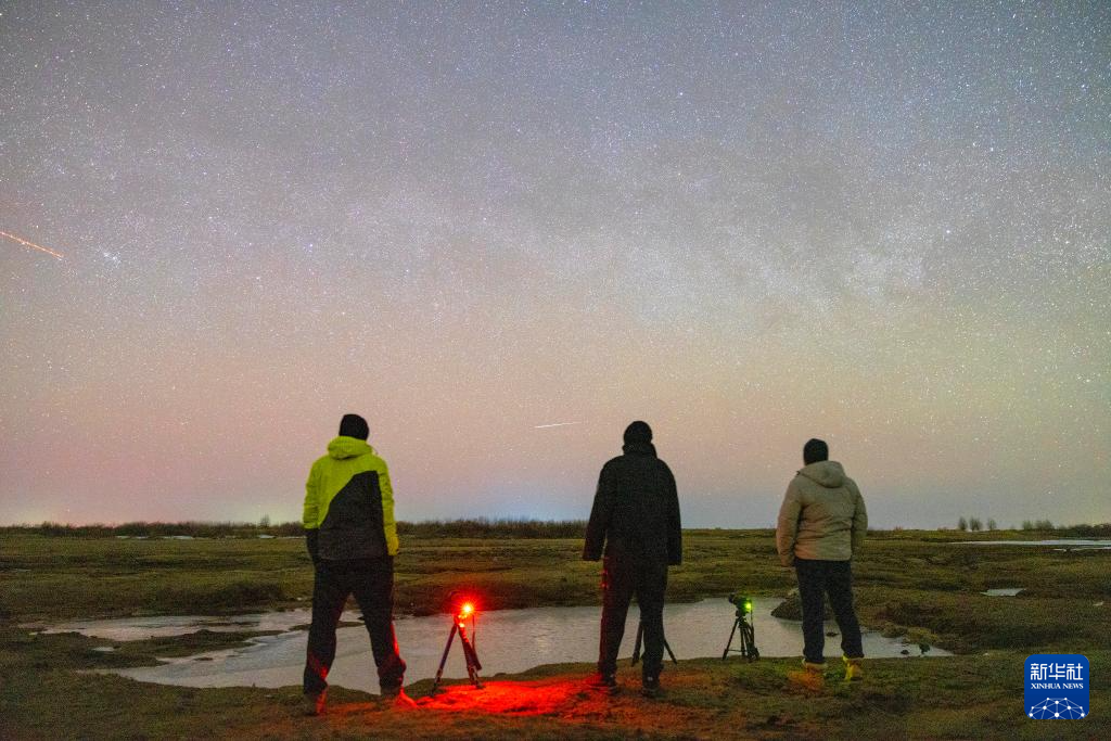 3月22日,攝影愛好者在黑龍江省佳木斯市富錦市大榆樹鎮(zhèn)觀測極光。