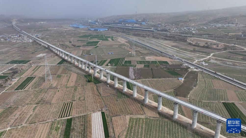 這是西延高鐵富平特大橋(3月26日攝,無人機(jī)照片)。