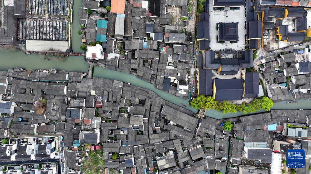 這是3月29日拍攝的安昌古鎮(zhèn)一景(無人機(jī)照片)。
