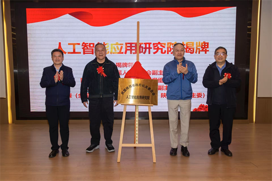 民盟陜西省政府機(jī)關(guān)委員會副主委馮永強(qiáng)宣讀成立“兩院”文件,在全體與會人員的共同見證下, 陜西省十屆人大常委會副主任、省決策咨詢委員會副主任鄧?yán)恚f(xié)陜西省第十二屆委員會副主席陳強(qiáng),政協(xié)陜西省第十二屆委員會副主席王二虎,全國政協(xié)委員、民盟中央常委、陜西省委副主委昝林森共同為“兩院”揭牌。隨著紅綢緩緩揭開,鐫刻金色大字的“人工智能應(yīng)用研究院”和“人工智能商學(xué)院”牌匾熠熠生輝,全場響起熱烈的掌聲。這兩個新成立的機(jī)構(gòu)承載著數(shù)字科技時代的重要使命,將在理論研究、人才培養(yǎng)、成果轉(zhuǎn)化等方面發(fā)揮關(guān)鍵作用,為推動陜西的科技創(chuàng)新和經(jīng)濟(jì)社會發(fā)展貢獻(xiàn)力量。