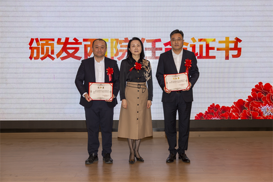 張紅晨主委給張維先院長和謝建峰院長頒發(fā)任命證書