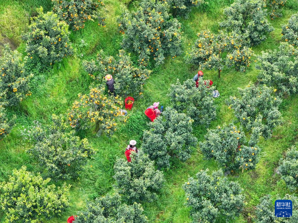 眼下,重慶市石柱縣王場鎮(zhèn)萬畝晚熟柑橘迎來豐收季,當(dāng)?shù)剞r(nóng)民搶抓農(nóng)時采摘柑橘,一派繁忙景象。
