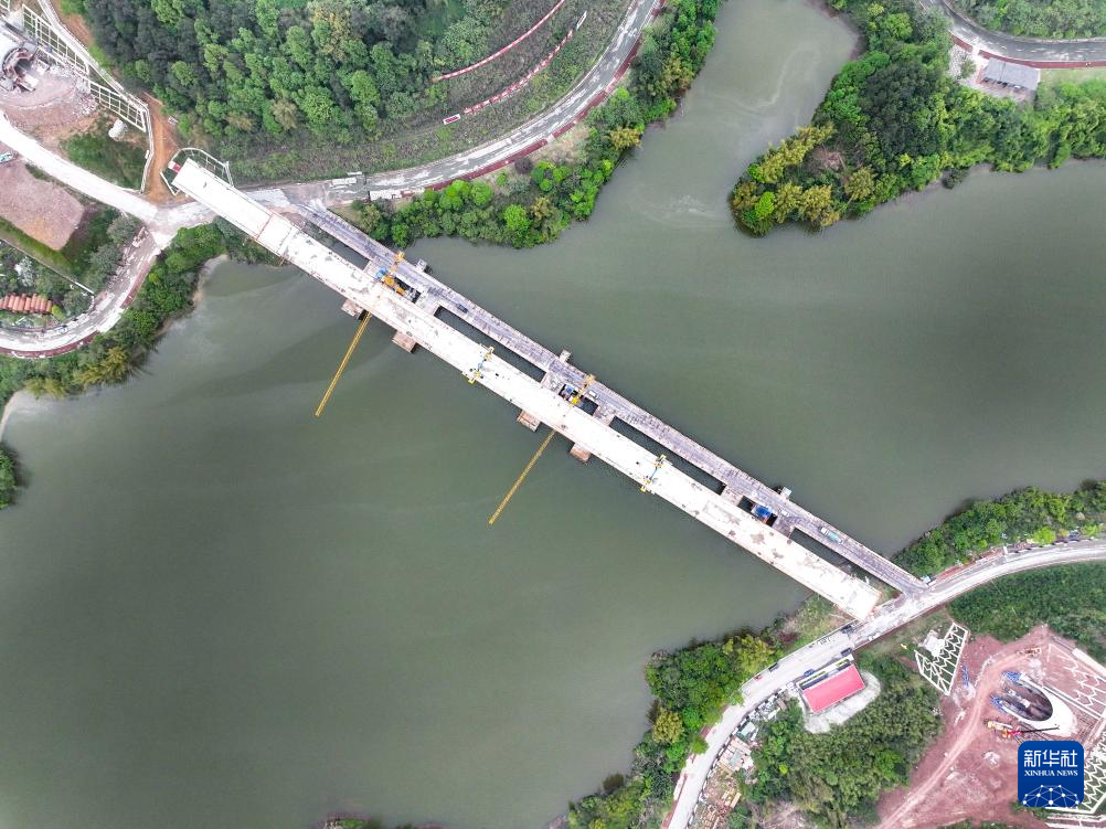 這是4月12日拍攝的合龍后的成渝中線高鐵玄天湖雙線大橋。