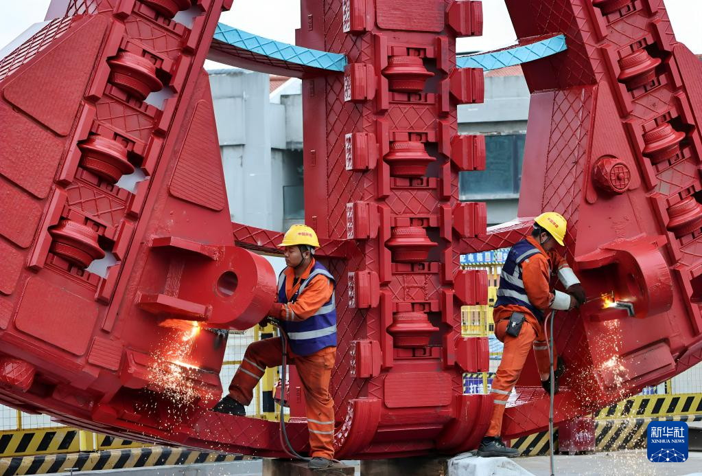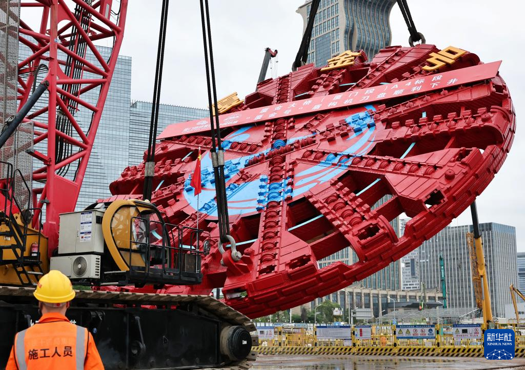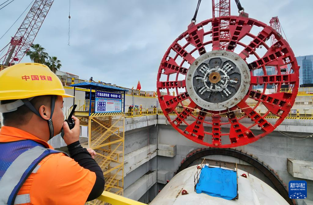 4月26日,中鐵十四局工程施工人員在對超大直徑泥水平衡盾構(gòu)機“廈金號”盾構(gòu)機刀盤進(jìn)行起裝吊運。“廈金號”盾構(gòu)機總長165米,重約5100噸,最大開挖直徑16.15米。