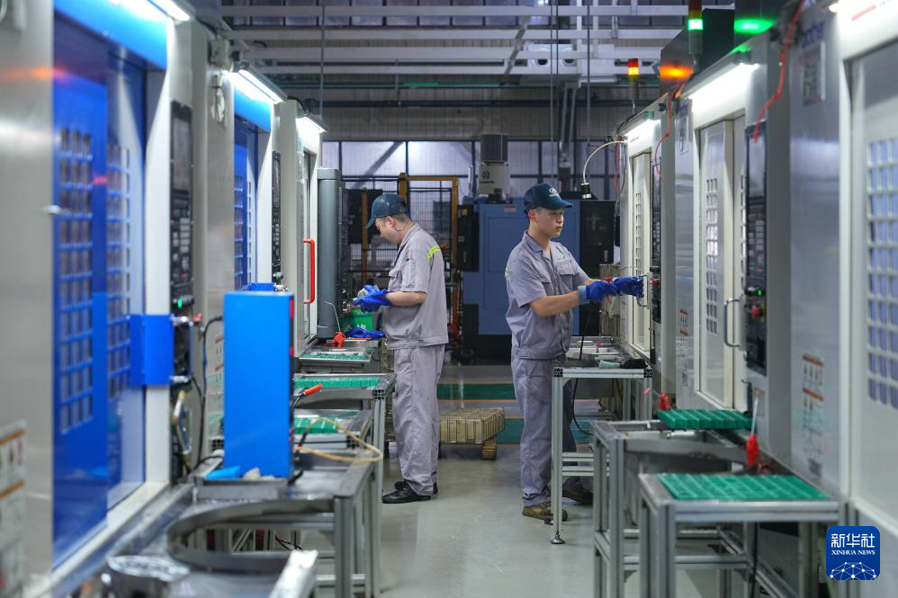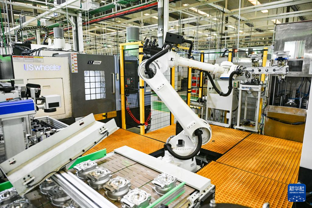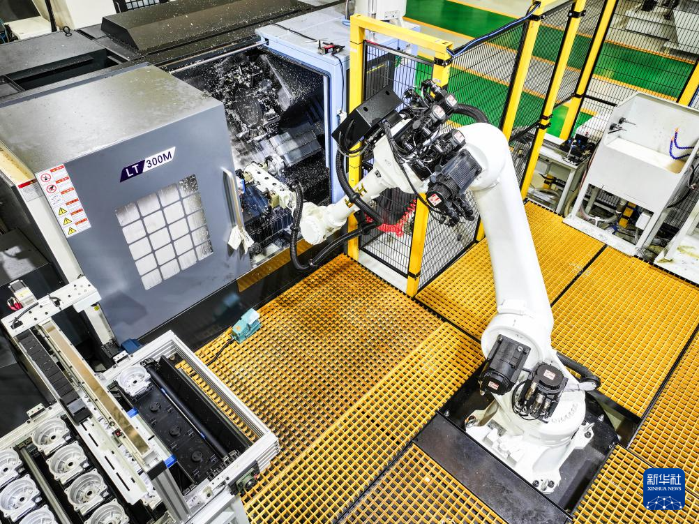 這是5月9日在位于北碚區(qū)的重慶順多利機(jī)車有限責(zé)任公司精工基地拍攝的自動(dòng)化生產(chǎn)作業(yè)現(xiàn)場(chǎng)。