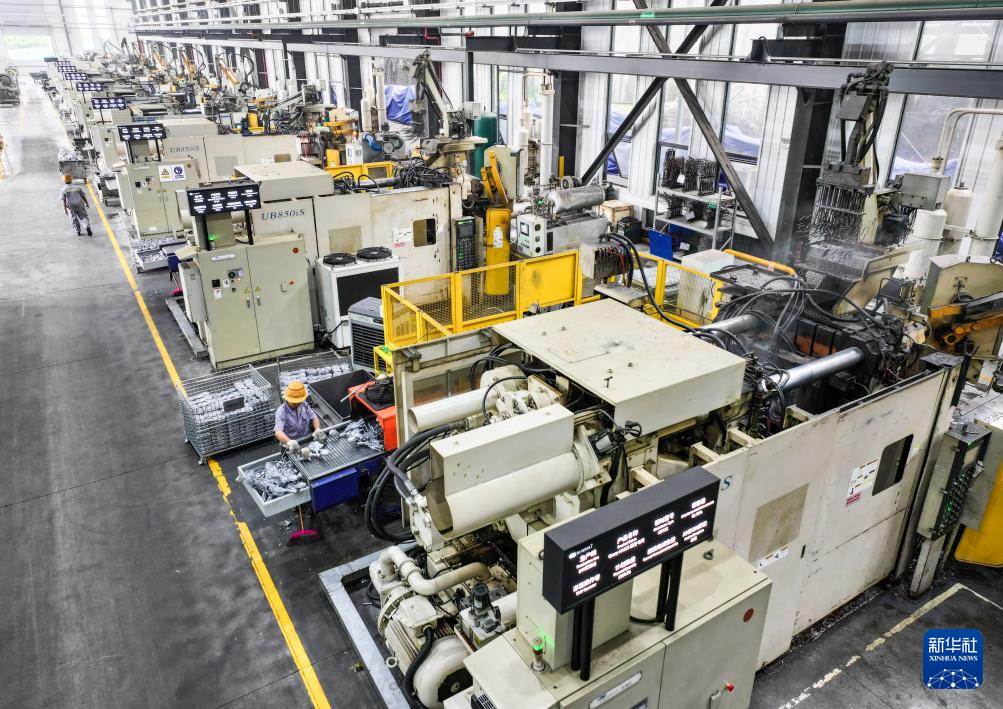這是5月9日在位于北碚區(qū)的重慶順多利機(jī)車有限責(zé)任公司鑄造基地拍攝的自動(dòng)化生產(chǎn)作業(yè)現(xiàn)場(chǎng)(無人機(jī)照片)。
