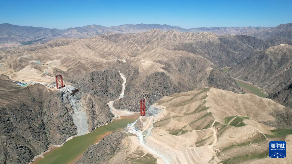 這是5月10日拍攝的蘭永臨高速公路洮河大橋纜索吊裝系統(tǒng)(無人機照片)。