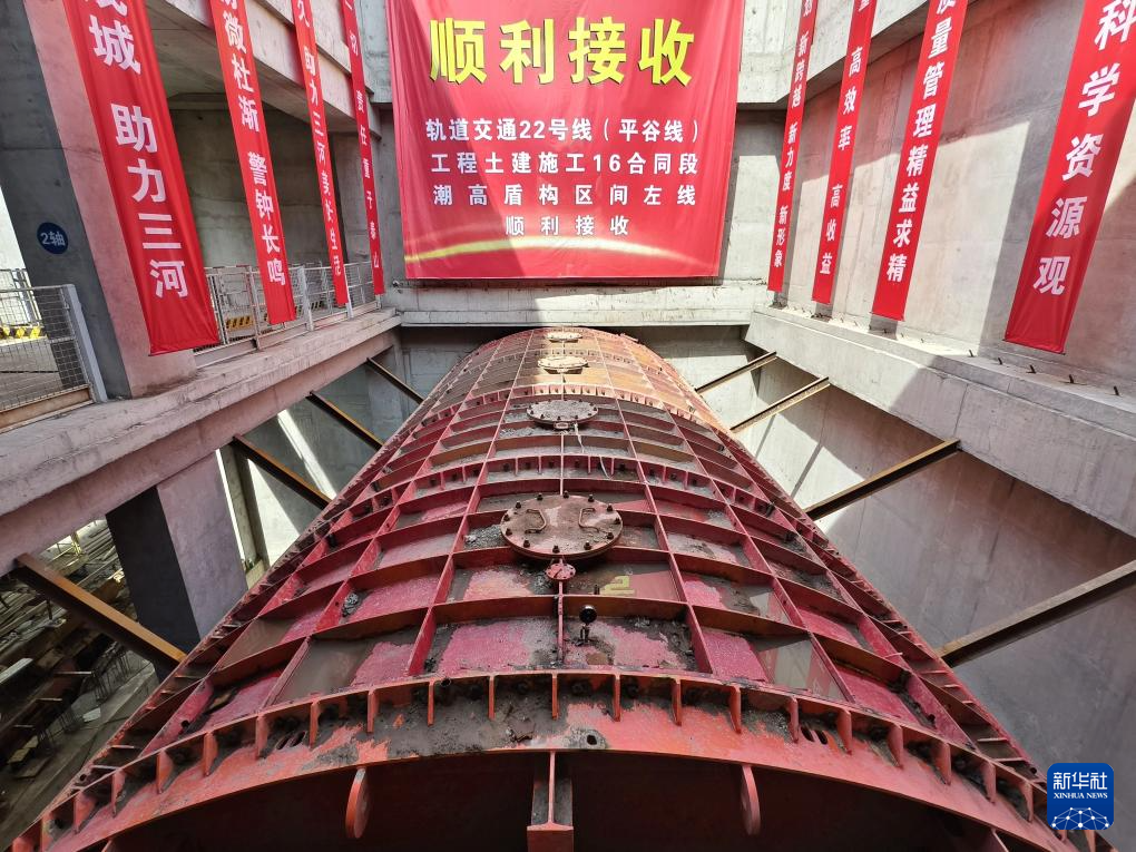 這是北京軌道交通22號(hào)線(平谷線)潮白大街站——高樓站左線盾構(gòu)機(jī)掘進(jìn)終點(diǎn)(5月10日攝)。