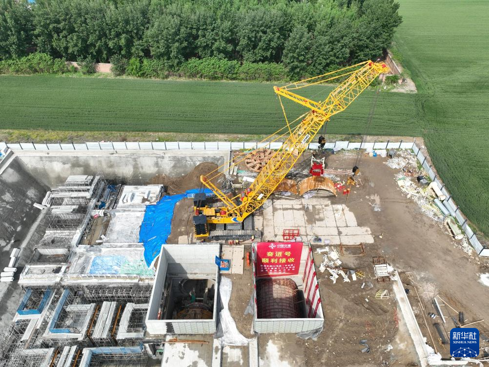 這是北京軌道交通22號(hào)線(平谷線)潮白大街站——高樓站左線盾構(gòu)機(jī)掘進(jìn)終點(diǎn)(5月10日攝,無(wú)人機(jī)照片)。