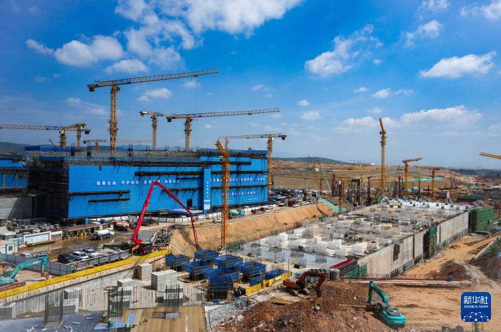 這是5月21日拍攝的渝昆高鐵長(zhǎng)水機(jī)場(chǎng)站明挖區(qū)間頂板澆筑施工現(xiàn)場(chǎng)。左側(cè)是正在建設(shè)的長(zhǎng)水機(jī)場(chǎng)T2航站樓,未來將上跨明挖區(qū)間頂板。