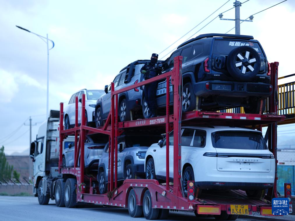 6月1日,在新疆伊爾克什坦口岸,邊檢站執(zhí)勤民警在檢查出口商品車。