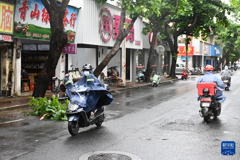 6月14日,在廣東省湛江市,市民冒雨騎行。
