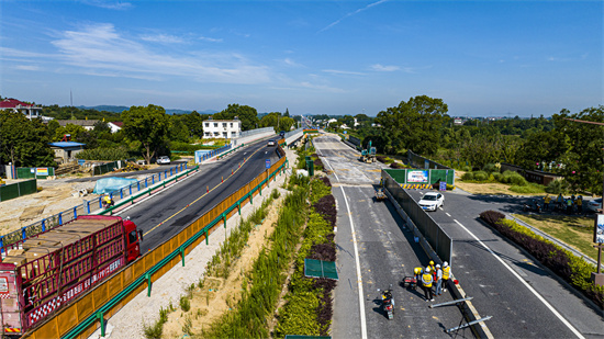 據(jù)了解,二軍公路上跨合九鐵路改擴建工程總長818.147米,總投資5569.12萬元。當(dāng)下,中鐵十局建設(shè)者正戰(zhàn)高溫加緊組織施工。該工程是區(qū)域交通網(wǎng)重要節(jié)點,是“陜電入皖”項目800千伏特高壓廬江換流站建設(shè)大件運輸?shù)闹匾缆吠ǖ溃ǔ珊髮⑻嵘暇盆F路與二軍公路立體通行效率,助力“陜電入皖”工程建設(shè)。(巢志斌 攝)