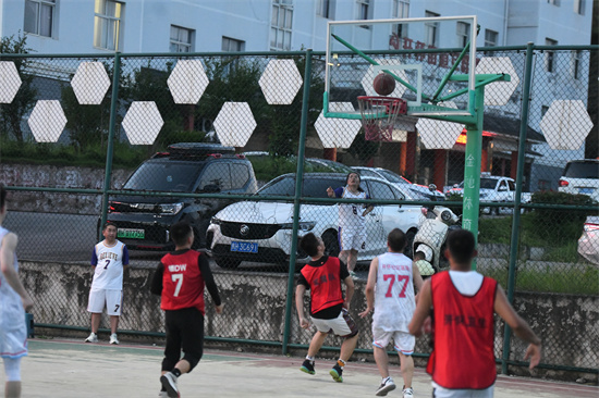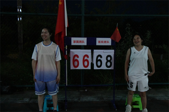當(dāng)天晚上,“醫(yī)BA”閉幕式表演賽,職工家屬男隊VS醫(yī)院男隊,如火如荼。
