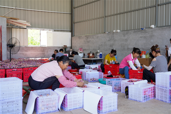 在忙碌的選果車間,果農(nóng)羅學(xué)輝望著籮筐滿盈的芙蓉李,黝黑的臉上洋溢著自豪。他掏出磨損的智能手機(jī),熟練地劃開屏幕,點(diǎn)進(jìn)兒子運(yùn)營(yíng)的拼多多店鋪:“這小子,還真被他折騰出來了!”屏幕上顯示著誘人的西洋芙蓉李圖片,下方不斷滾動(dòng)的好評(píng)和上漲的銷量數(shù)字讓老羅的笑意更深:“剛開店那會(huì)兒,我心里直打鼓,這些年輕人還能把果子賣到電腦那頭去?嘿,沒想到!去年一上線就賣了不少,今年看他和小伙伴們那個(gè)勁兒,馬上就要沖破50萬斤大關(guān)了!”
