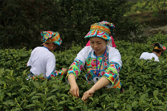 如今,每到采茶季,桃花山就飄蕩著采茶女的歌聲,鮮嫩的茶葉在陽光下閃著金光。
