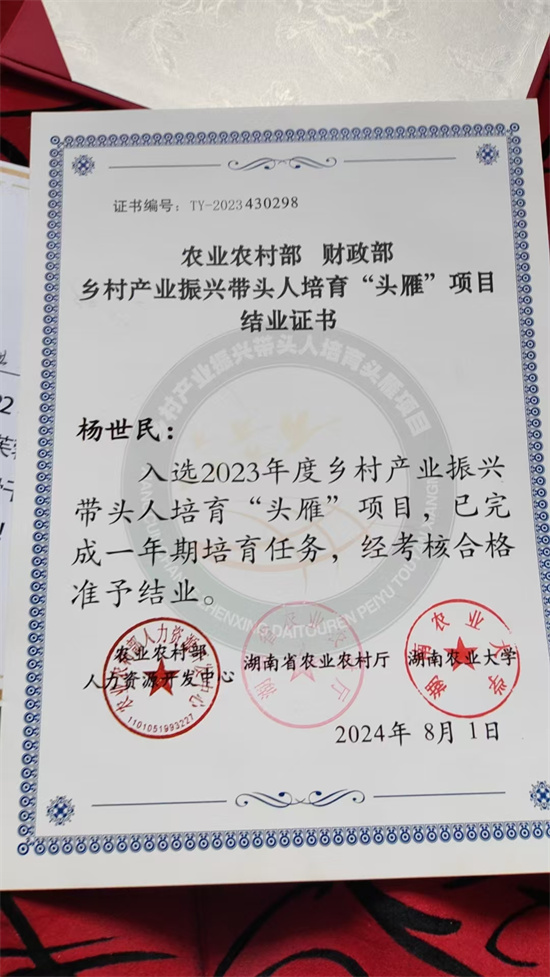 各級政府也給予了大力支持:修建灌溉蓄水池、地頭石階路和產(chǎn)業(yè)油漆公路,大大改善了基礎(chǔ)設(shè)施條件。團委推薦他參加各類創(chuàng)業(yè)推薦會和大賽,2023年入選湘西州鄉(xiāng)村振興青年英才返鄉(xiāng)創(chuàng)業(yè)支持計劃,同年參加湖南省“青馬工程”企業(yè)班暨“芙蓉學(xué)子青年人才培養(yǎng)計劃”。