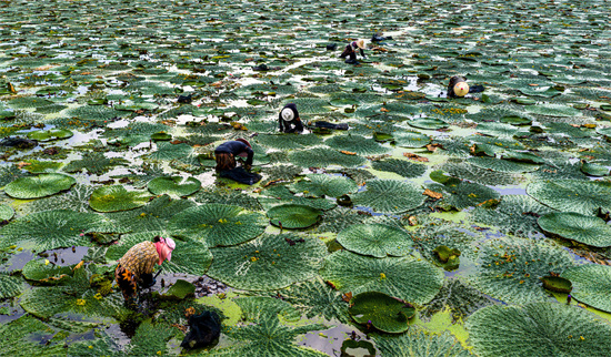 芡實(shí)又名“雞頭米”,具有較高的營養(yǎng)及藥用價值。近年來,廬江縣充分發(fā)揮楊柳圩豐沛的水鄉(xiāng)資源優(yōu)勢,鼓勵農(nóng)民種植水生滋補(bǔ)植物芡實(shí)。目前,該縣芡實(shí)種植面積已達(dá)2.4萬余畝,僅此一項(xiàng)當(dāng)?shù)剞r(nóng)民每年可進(jìn)賬達(dá)7000多萬元。 (巢志斌  攝)