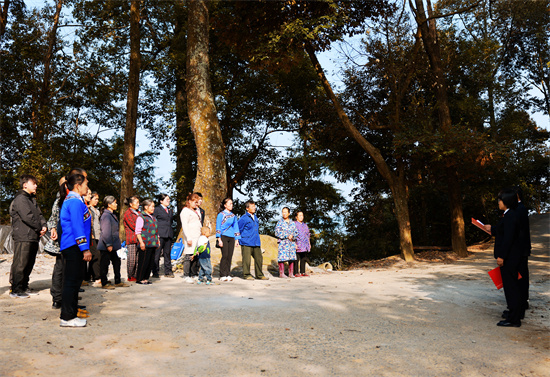 一株古樹歷經(jīng)百年風(fēng)霜,一片“紅軍林”承載代代記憶。為扎實(shí)推進(jìn)保護(hù)工作,四部門多次會(huì)商研判,提前深入當(dāng)?shù)亻_(kāi)展普法宣傳:向村民細(xì)致解讀《古樹名木保護(hù)條例》,發(fā)放宣傳材料,積極倡導(dǎo)群眾化身“古樹管家”,通過(guò)定期觀察生長(zhǎng)狀態(tài)、及時(shí)反饋異常情況,共同守護(hù)這份生態(tài)與歷史財(cái)富。