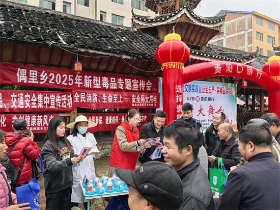 11月11日,貴州錦屏縣偶里鄉(xiāng)平安法治辦聯(lián)合鄉(xiāng)綜合治理服務(wù)中心、派出所,在偶里鄉(xiāng)寨歐村廣場以“積分+禁毒”的新模式開展禁毒宣傳活動(dòng),將禁毒知識(shí)以聽得懂、記得住、用得著的形式帶到群眾身邊。