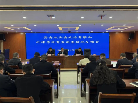 11月27日上午,縣委政法委督察巡查縣法院工作情況反饋會議召開,縣委政法委政工室主任、督察組組長劉靖,縣法院黨組副書記、副院長謝昭棟,督察巡查組全體成員以及縣法院黨組班子成員、中層以上干部參加會議。