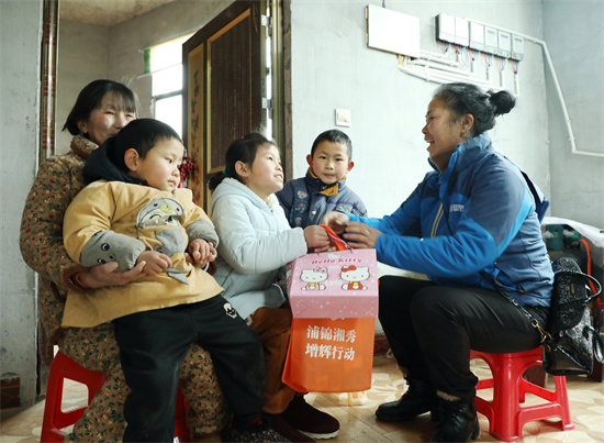 1月9日,愛(ài)心志愿者在湖南省保靖縣清水坪鎮(zhèn)黃連村走訪貧困學(xué)生,送去新年禮物。新春佳節(jié)臨近,上海浦錦愛(ài)心助學(xué)團(tuán)和該縣愛(ài)心企業(yè)秈泉食品責(zé)任公司的志愿者深入清水坪、比耳、復(fù)興等鄉(xiāng)鎮(zhèn),走訪貧困學(xué)生,送慰問(wèn)金、衣物和文體用品等新年禮物,讓山村孩子愉快度春節(jié)。(俞采華)