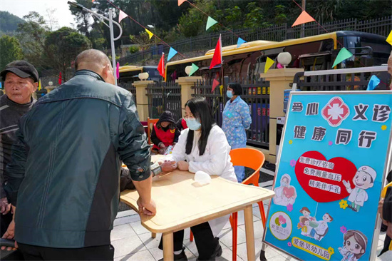 活動尾聲,場地右側(cè)的“健康關(guān)懷角”依舊熱鬧——擁有醫(yī)護背景的家長志愿者為老人們測量血壓,孩子們則主動為爺爺奶奶捶背、捏肩,用行動詮釋“孝”的含義。隨后,全體人員起立,共同合唱《讓愛住我家》,熟悉的旋律、真摯的歌聲回蕩在福利院上空,大家揮舞氣球、手拉手,將現(xiàn)場變成愛的大家庭。