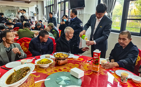 2025年10月29日,重陽(yáng)節(jié),在安徽省合肥市廬江縣柯坦鎮(zhèn)第一敬老院,合肥市灝美大酒店工作人員自帶食材和餐具,制作出一桌桌精美的敬老“孝親飯”,讓老人們品嘗到城市大飯店才有的精致菜肴。護(hù)理方廬江縣盛銘?zhàn)B老護(hù)理中心是一家專業(yè)護(hù)理團(tuán)隊(duì),一直致力于將柯坦鎮(zhèn)第一敬老院打造成一個(gè)老有所養(yǎng)、老有所樂(lè)、老有所醫(yī)的頤養(yǎng)環(huán)境,當(dāng)天他們邀請(qǐng)了廬城一家黃梅戲民間藝術(shù)團(tuán),現(xiàn)場(chǎng)演出老人們耳熟能詳?shù)膫鹘y(tǒng)戲曲。敬老院百余位老人一邊吃著可口的佳肴,一邊欣賞黃梅戲、廬劇,過(guò)了一個(gè)特殊的重陽(yáng)節(jié)。