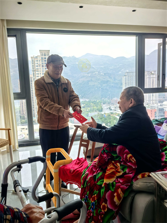 本月22日清晨,慰問組一行趨車來到來到位于西部新區(qū)胡家村居民房的“西辰御府”3幢11一13號(hào)樓陳永杰家。原奉節(jié)師范學(xué)校校長陳永杰,現(xiàn)年84歲,他于2016年因腦出血導(dǎo)致偏癱座在輪椅上,看到慰問組一行的到來時(shí),陳老和他老伴流著眼淚不約而同地拱手地說:“真是謝謝你們。”慰問組的組長又再三叮囑老人積極配合治療,安心養(yǎng)病,保持樂觀心情,爭取早日康復(fù)。