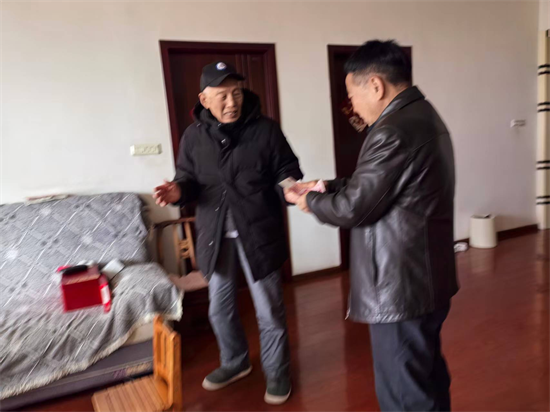 (圖為走訪慰問組給李杰老人送慰問金的場景)
