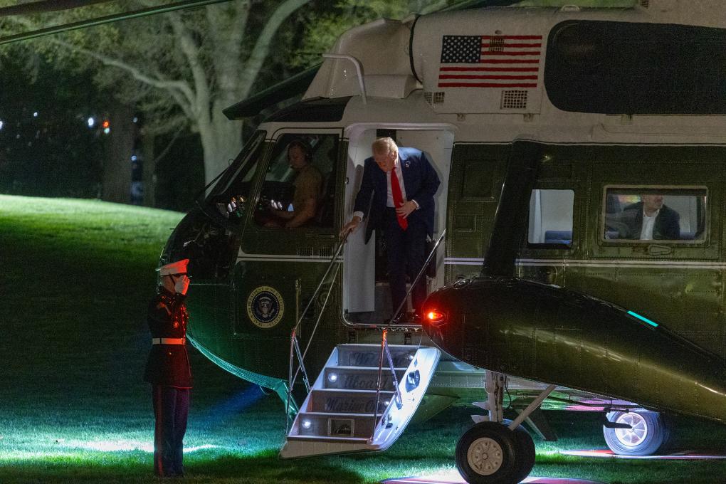 3月30日,美國總統(tǒng)特朗普乘直升機(jī)返回首都華盛頓白宮。新華社記者 胡友松 攝