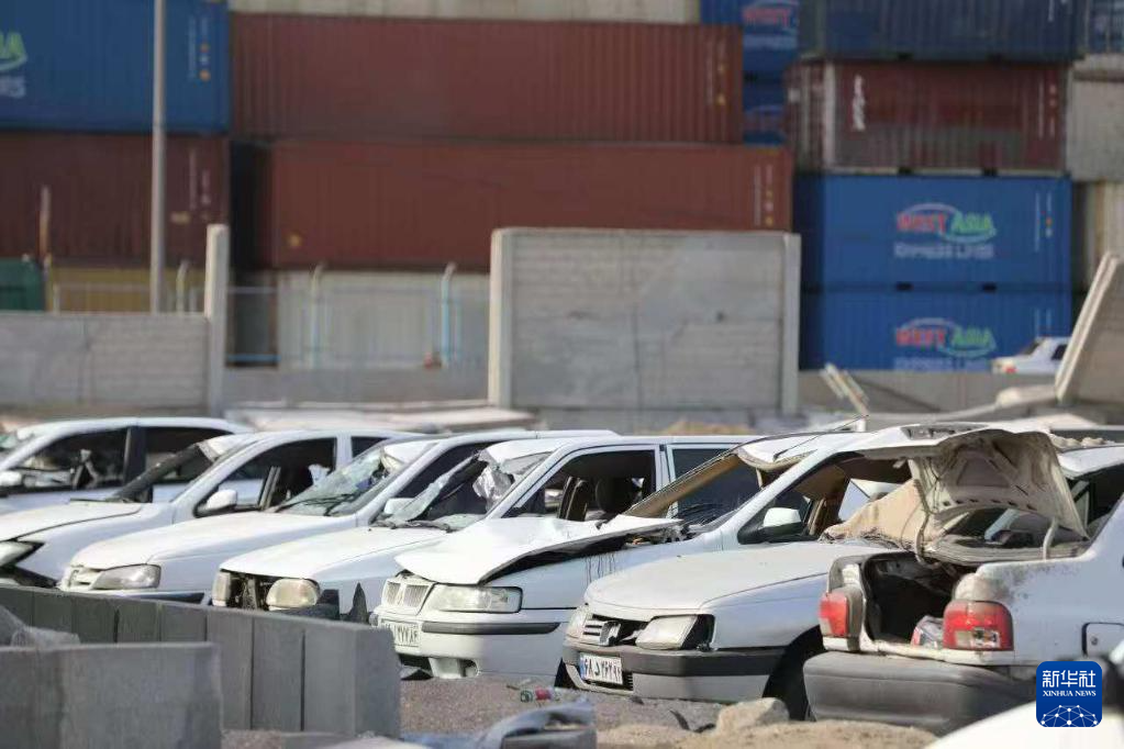 這是4月26日在伊朗沙希德拉賈伊港的爆炸現(xiàn)場拍攝的被毀車輛。