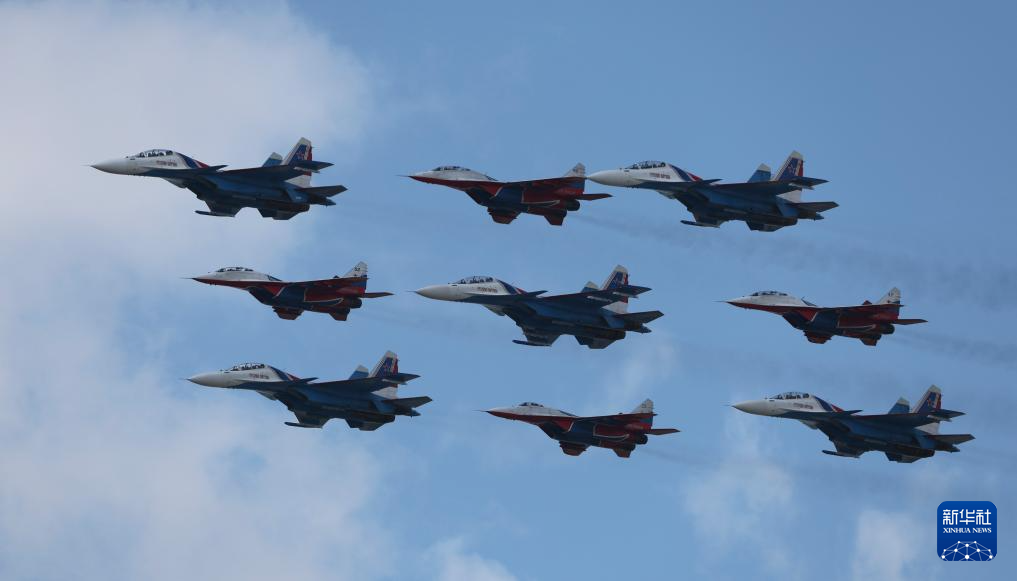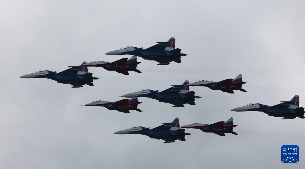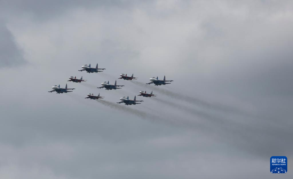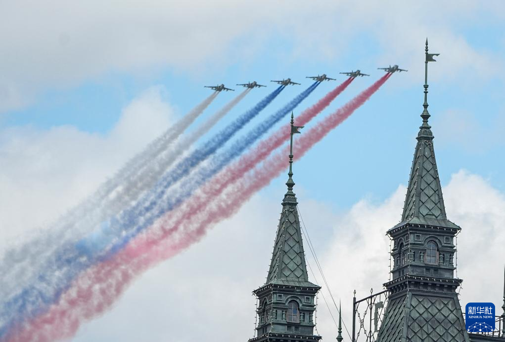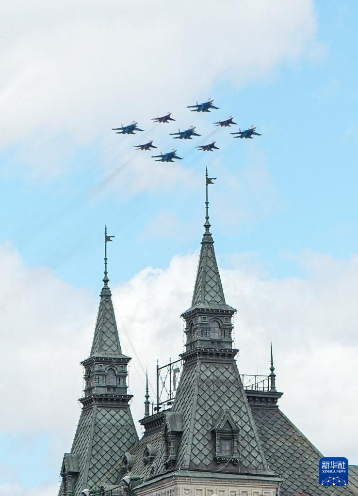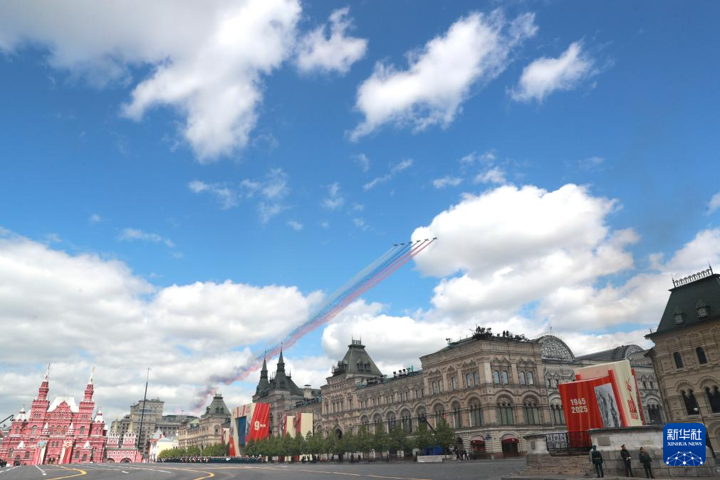5月9日,在俄羅斯首都莫斯科,戰(zhàn)機編隊參加紀念蘇聯(lián)偉大衛(wèi)國戰(zhàn)爭勝利80周年閱兵式。