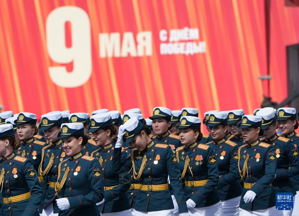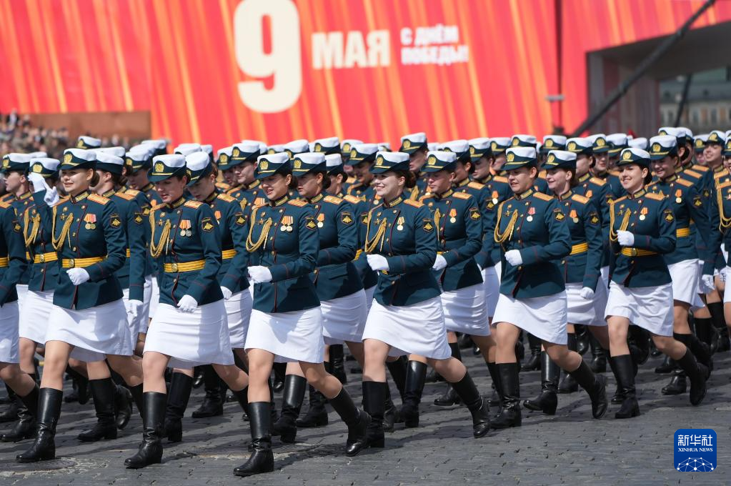 5月9日,在俄羅斯首都莫斯科,女兵參加紀念蘇聯(lián)偉大衛(wèi)國戰(zhàn)爭勝利80周年閱兵式。