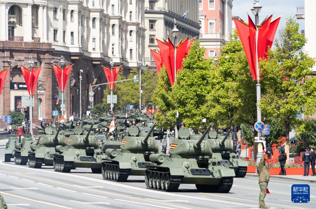 5月9日,在俄羅斯首都莫斯科,T-34坦克參加紀念蘇聯(lián)偉大衛(wèi)國戰(zhàn)爭勝利80周年閱兵式。