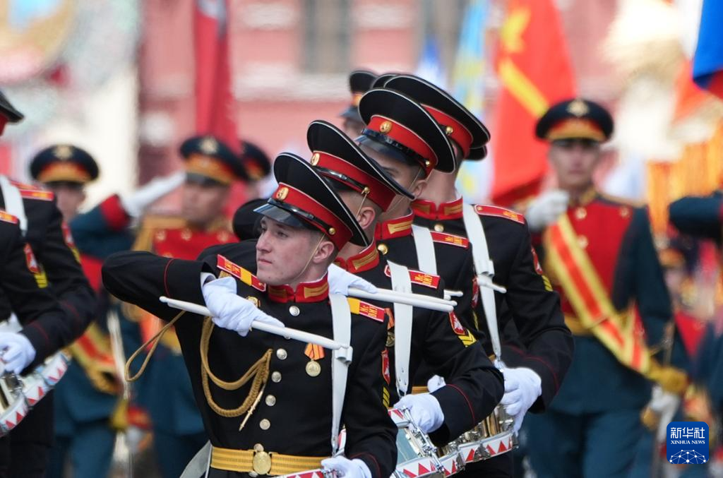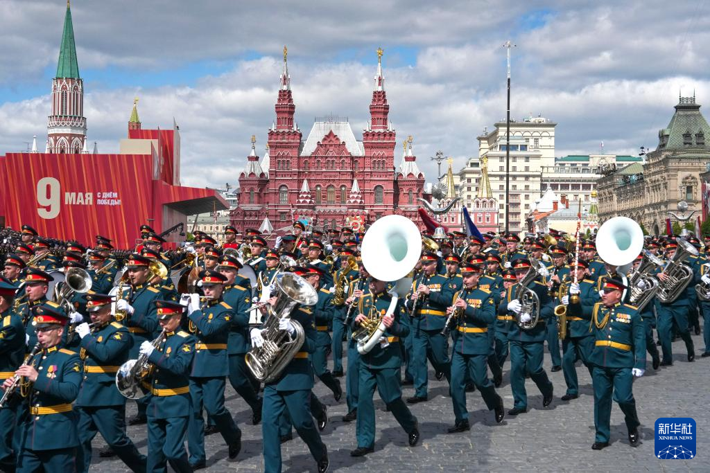 5月9日,在俄羅斯首都莫斯科,軍樂隊參加紀念蘇聯(lián)偉大衛(wèi)國戰(zhàn)爭勝利80周年閱兵式。