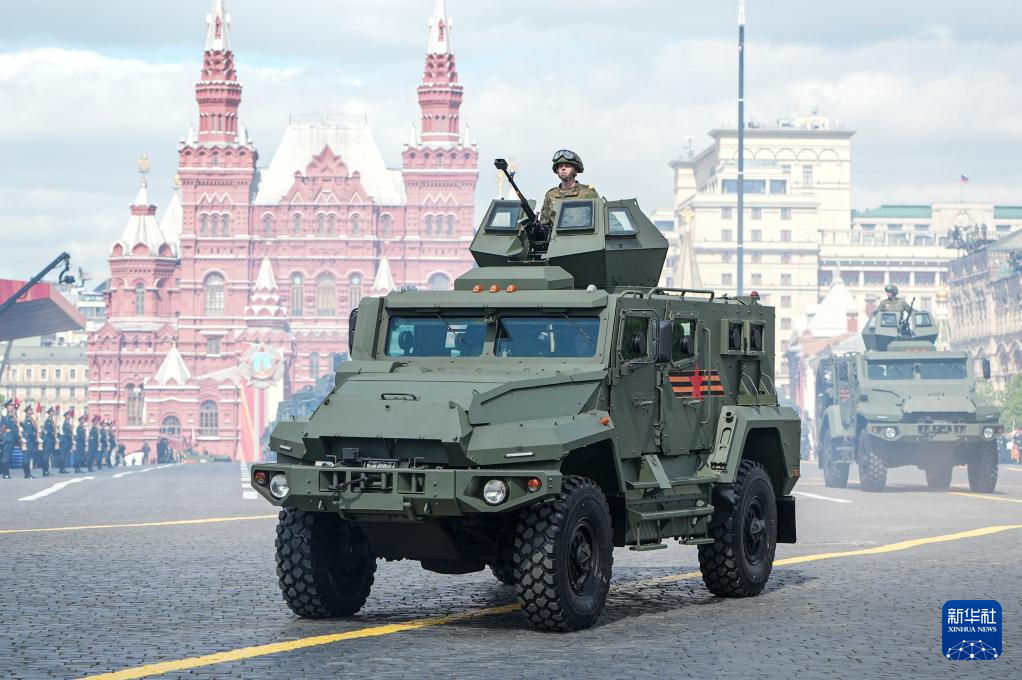 5月9日,在俄羅斯首都莫斯科,軍用車輛參加紀念蘇聯(lián)偉大衛(wèi)國戰(zhàn)爭勝利80周年閱兵式。