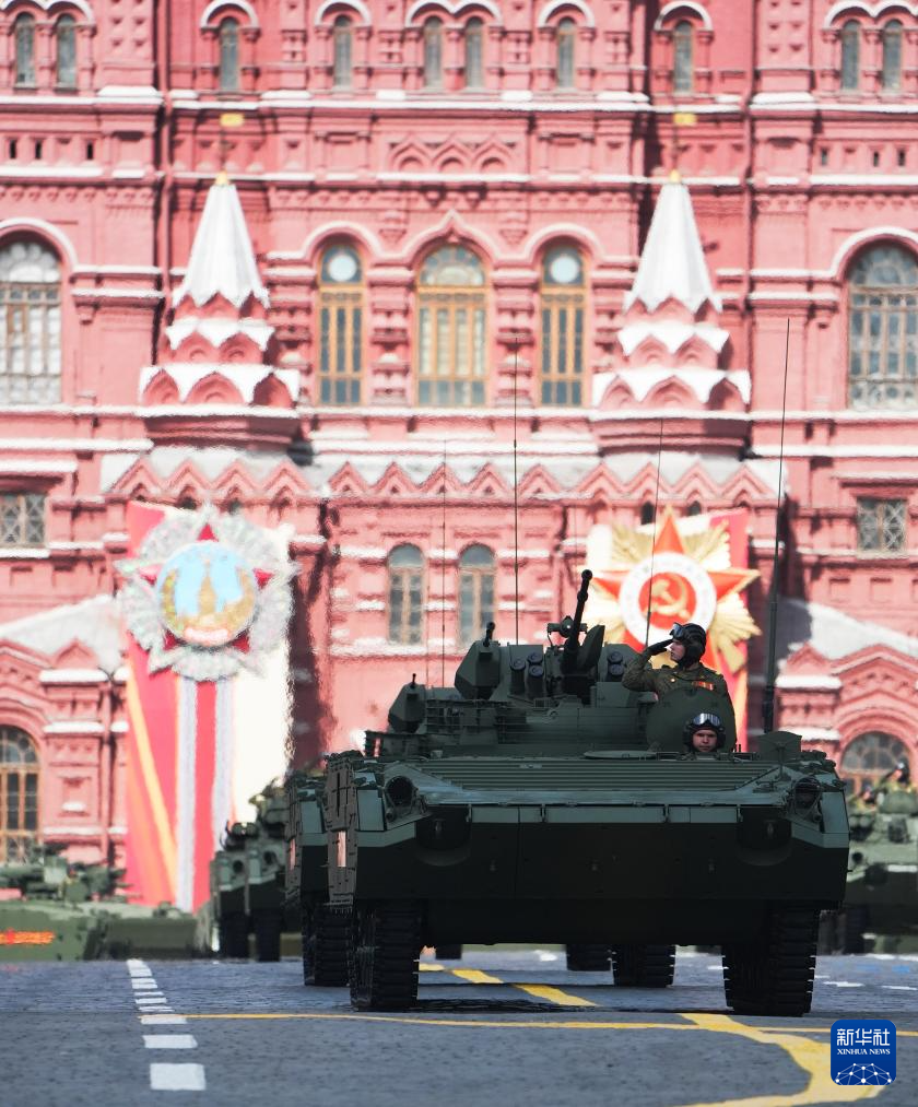 5月9日,在俄羅斯首都莫斯科,步兵戰(zhàn)車參加紀念蘇聯(lián)偉大衛(wèi)國戰(zhàn)爭勝利80周年閱兵式。