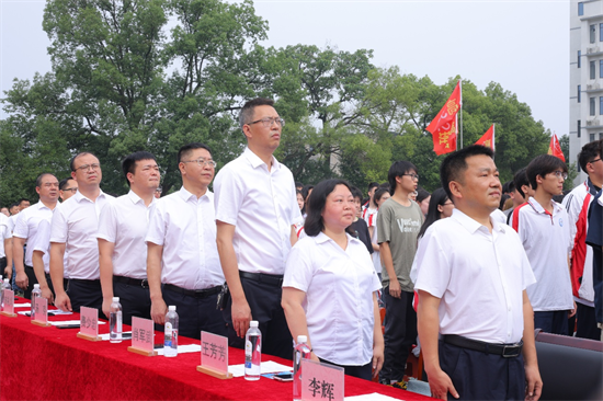 《啟程》的歌聲緩緩響起,學(xué)生們有序入場(chǎng)。在雄壯的國(guó)歌聲中,五星紅旗冉冉而升,全體肅立。這一刻,家國(guó)情懷在心中激蕩。