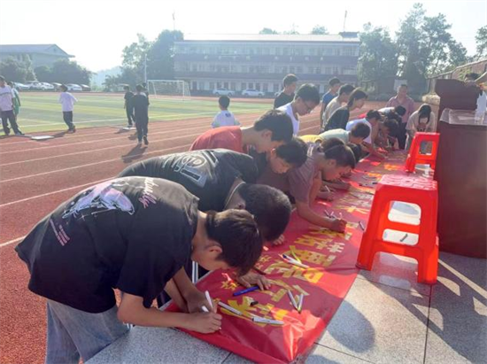 活動尾聲,師生有序在主題橫幅上簽名并在班上簽訂承諾書。此次活動是學校推進“思政+健康”教育的重要實踐,既筑牢了校園健康根基,更深化了師生家國情懷。