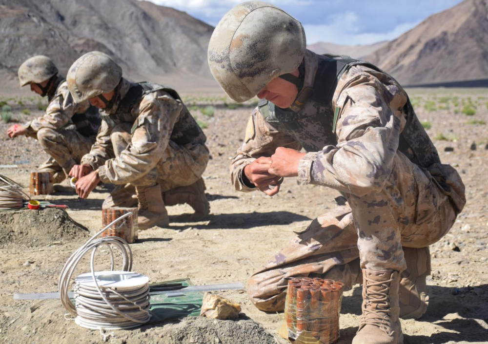 ↑組織爆破手拆裝炸藥訓(xùn)練。彭善宇 攝