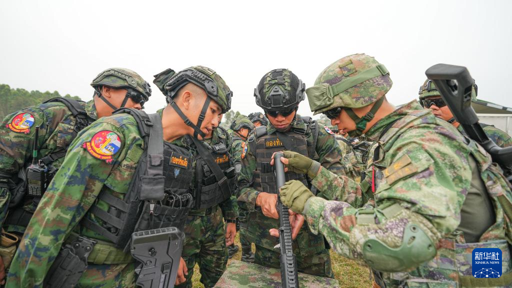 3月27日,在中泰“藍(lán)色突擊-2025”海軍聯(lián)合訓(xùn)練中,中泰雙方隊(duì)員進(jìn)行輕武器射擊交流。新華社發(fā)(賈成露 攝)