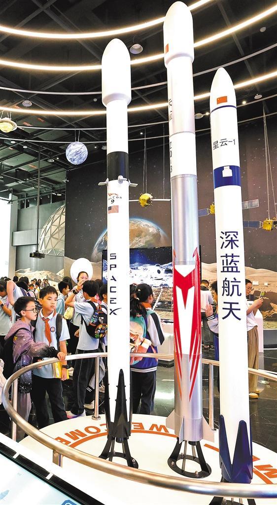 5月27日,學(xué)生在福建省福州市科技館參觀航天模型,近距離感受科技魅力。