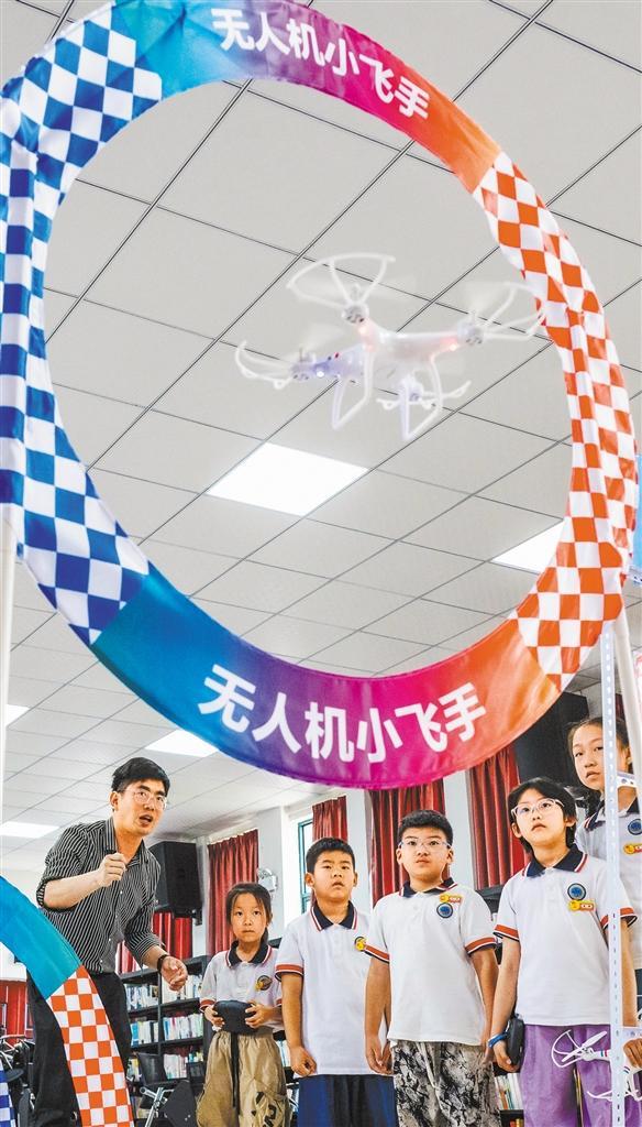 5月27日,安徽省蕪湖市孫村鎮(zhèn)中心小學(xué),教師在教授無人機(jī)飛行技術(shù)。