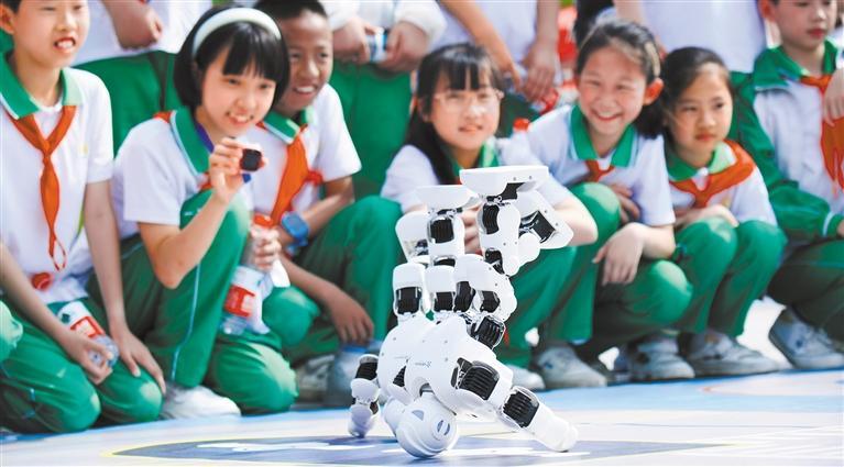 5月24日—31日是第25個(gè)全國科技活動(dòng)周,今年的主題是“矢志創(chuàng)新發(fā)展 建設(shè)科技強(qiáng)國”。全國各地開展了豐富多彩、形式多樣的群眾性科技活動(dòng)。圖為5月24日,觀眾在山東省科技館觀看人形機(jī)器人展覽。