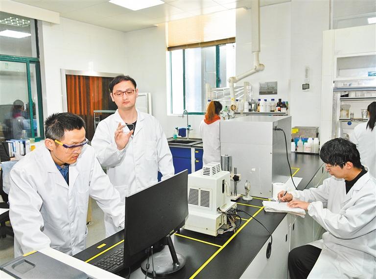 4月22日,位于金山區(qū)的甘田光學實驗室內,技術團隊對光變色材料進行應用實驗。