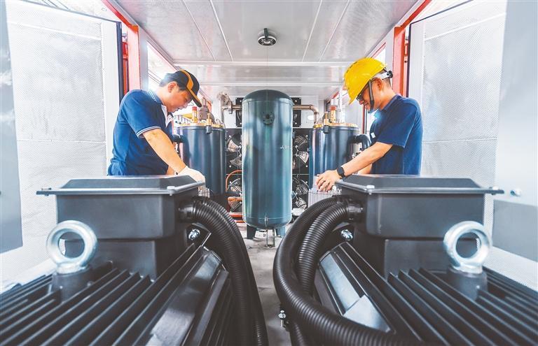 7月31日,技術人員在位于金山區(qū)碳谷綠灣產業(yè)園內的凱鑫森(上海)功能性薄膜產業(yè)股份有限公司調試設備。