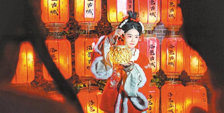 1月30日,游客在河南省洛陽(yáng)市洛邑古城體驗(yàn)旅拍。張光輝攝(中經(jīng)視覺)