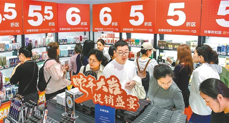 2月1日,海南省??谑腥赵聫V場(chǎng)的??厝蚓访舛惓莾?nèi),消費(fèi)者正在選購(gòu)。蘇弼坤攝(中經(jīng)視覺)